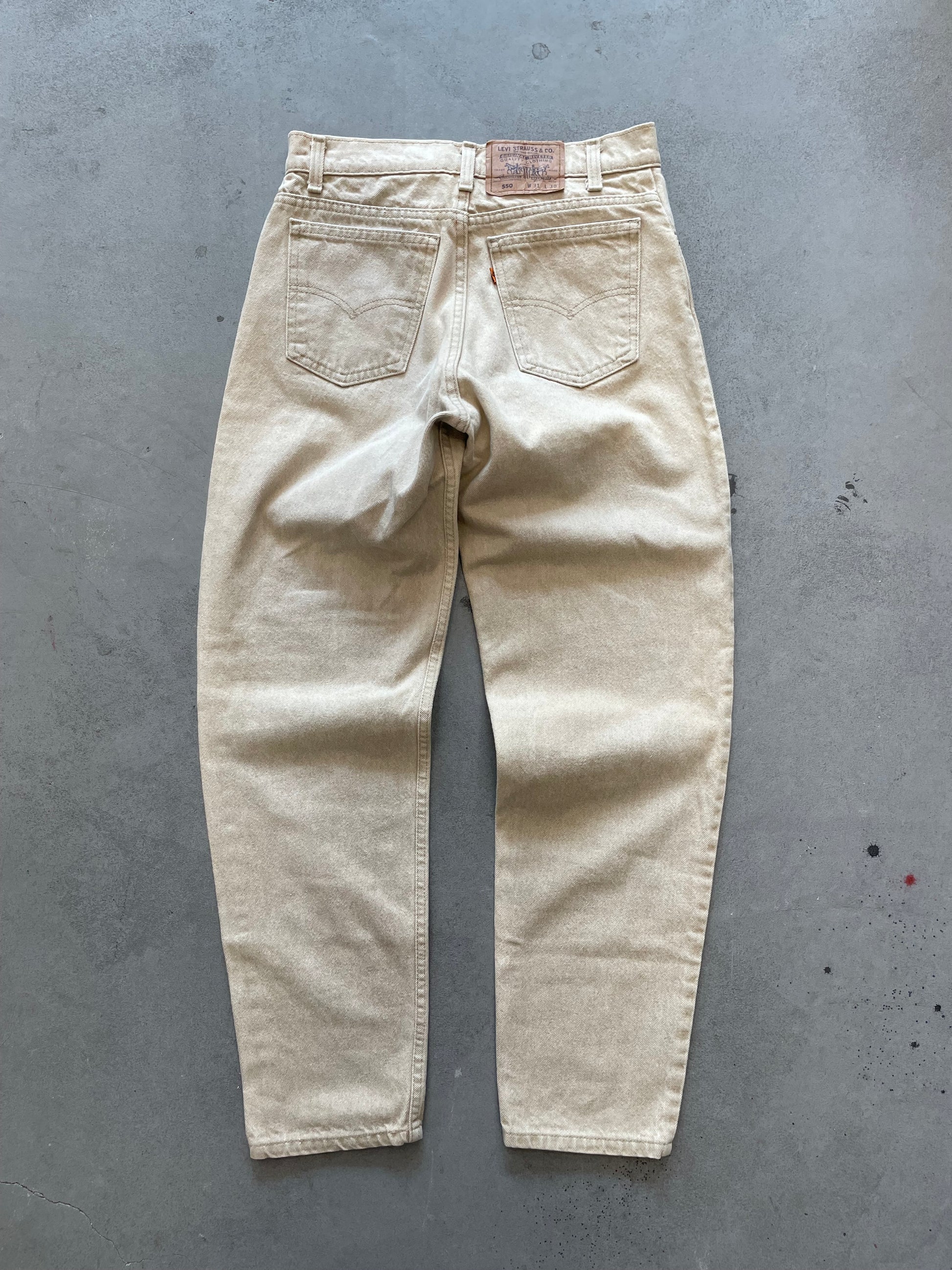 Clean, classic, and full of vintage charm — this 1980s/90s Levi’s Orange Tab piece comes in a rare cream-colored denim, making it a standout from the usual blue and black offerings. A product of Levi’s more style-forward Orange Tab line, this piece delivers laid-back retro cool with quality construction and timeless details.