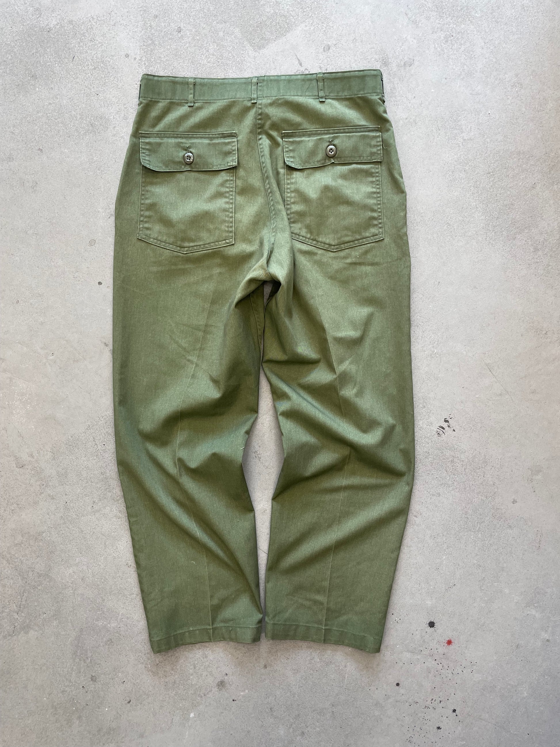 Tough, timeless, and utilitarian — these 1980s OG-107 military fatigue pants are an essential piece of vintage workwear. Originally issued by the U.S. military, they feature a rugged cotton sateen fabric in classic olive drab, with a perfectly worn-in feel that gets better with age.