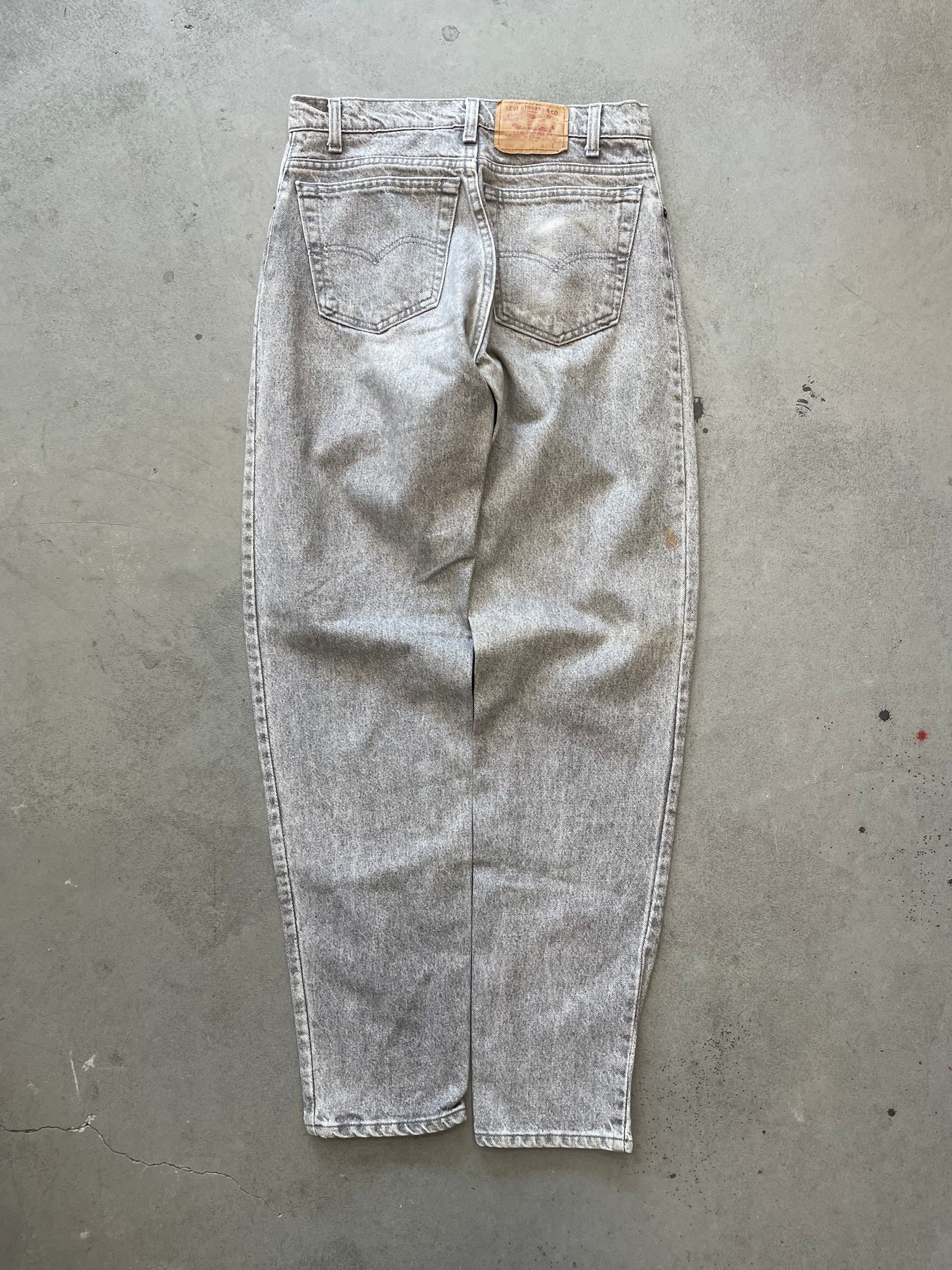 Step into classic '90s style with these vintage Levi’s 550 jeans in a clean gray wash. Featuring the signature relaxed fit and tapered leg, these jeans are known for their comfort and timeless silhouette. Made in the USA from sturdy cotton denim, they’re perfect for everyday wear or adding a subtle pop to a vintage-inspired look. Finished with classic five-pocket styling, a zip fly, and the iconic Levi’s back patch.