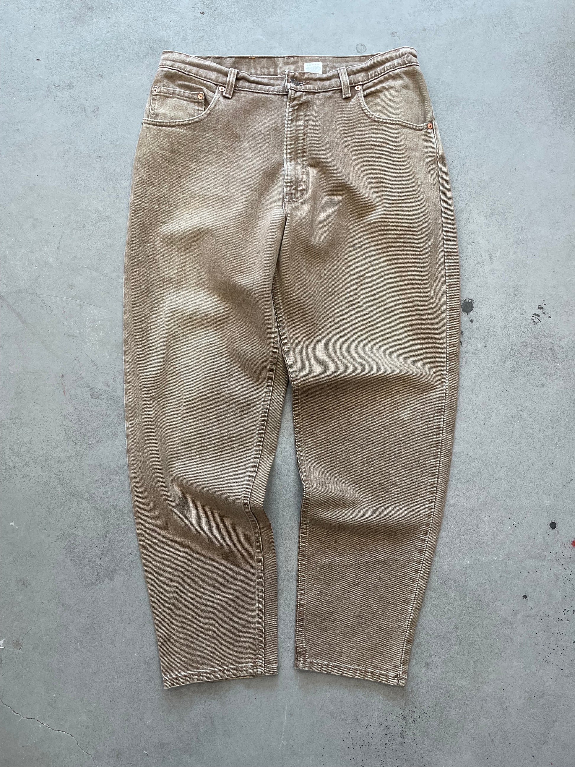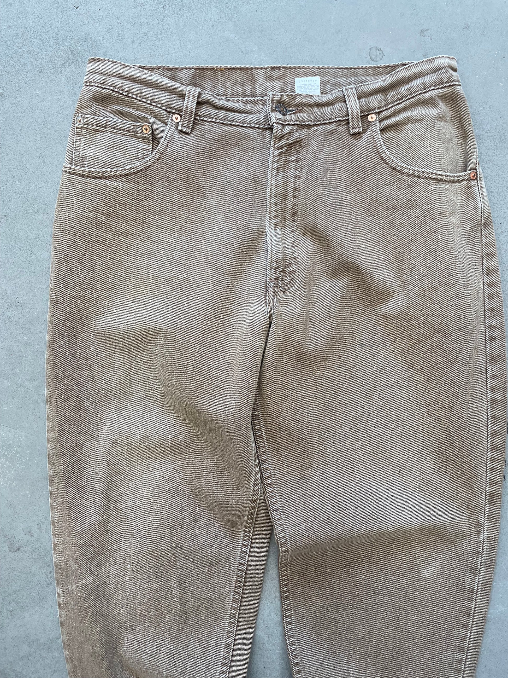 A subtle rarity with laid-back ‘90s attitude — these 1990s Levi’s 560 jeans come in brown denim with a blank red tab, marking them as a lesser-seen, possibly factory variant or limited run. Known for their relaxed fit and tapered leg, the 560s were built for comfort and casual wear, making them a go-to for effortless vintage styling.