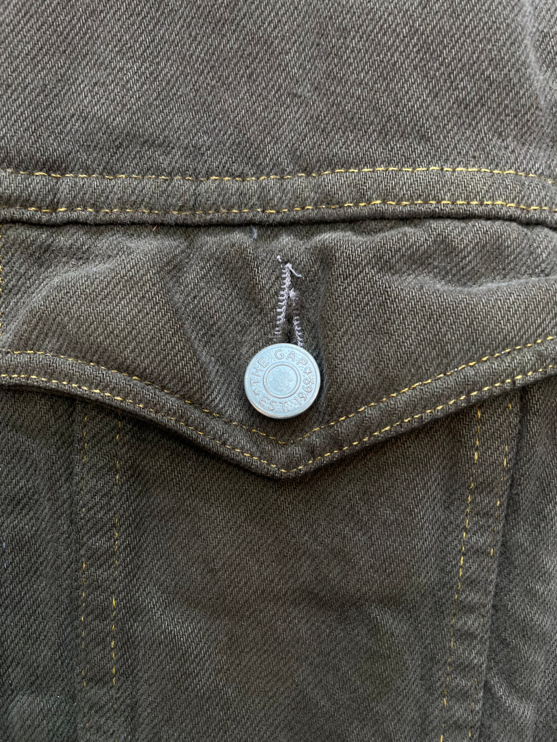 Timeless and rugged, this 1990s GAP brown trucker jacket captures that classic Americana vibe with a clean, minimal ‘90s touch. Made from durable cotton canvas in a rich, earthy brown tone, it features all the hallmarks of a traditional trucker — button front, flap chest pockets, and a boxy cropped fit.