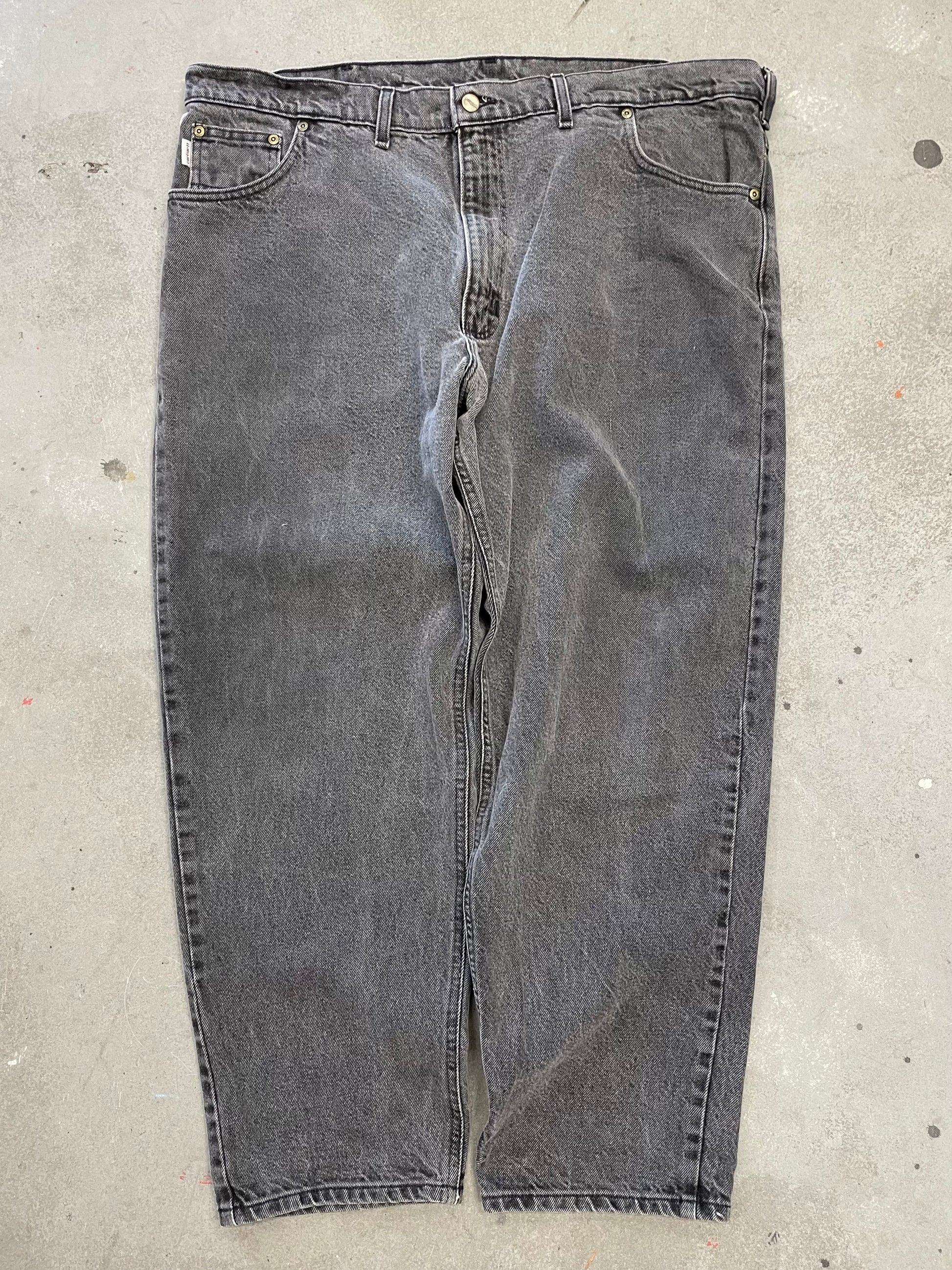 Introducing the 90s Carhartt Denim Jeans in black. These jeans feature a classic 90s design and are made with high-quality Carhartt denim for durability and style. Perfect for anyone looking for a staple piece in their wardrobe, these jeans offer both comfort and fashion.