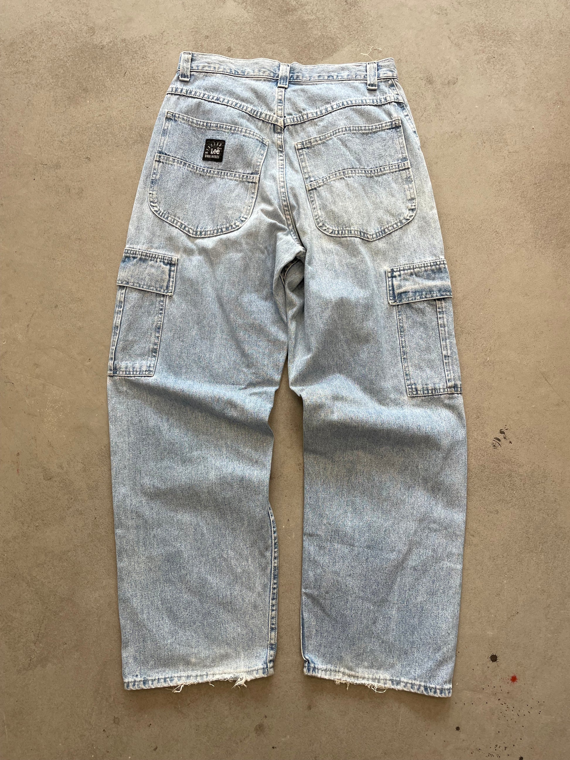 Straight from the golden age of utility streetwear — these 1990s Lee Riveted baggy cargo jeans deliver function, fit, and full ‘90s attitude. Built tough with reinforced riveted seams, these jeans feature a baggy silhouette, multiple cargo pockets, and classic carpenter-style details, all wrapped in heavyweight denim made to last.