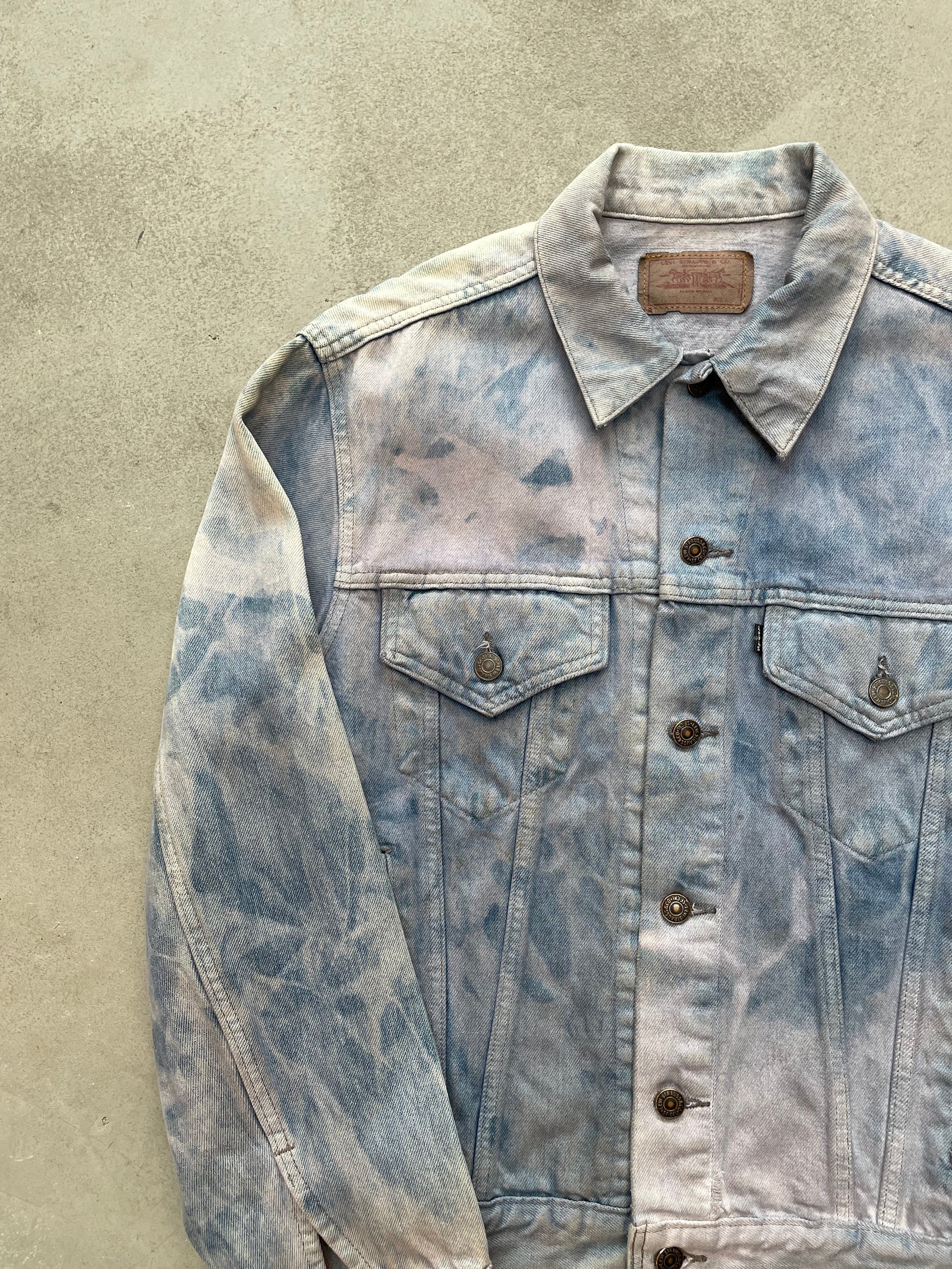 Stand out in this rare 1990s Levi’s Type 3 Trucker Jacket featuring a bold acid wash purple denim and elusive black Levi’s tab — a combo that’s both eye-catching and collectible. With its classic Type III silhouette — pointed yoke, flap chest pockets, and button front — this piece fuses iconic design with an edgy, vibrant twist.